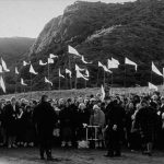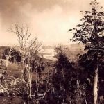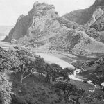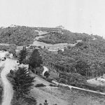 - Karekare 1916 with timber rail trestles and original mill houses. Bob Harvey collection