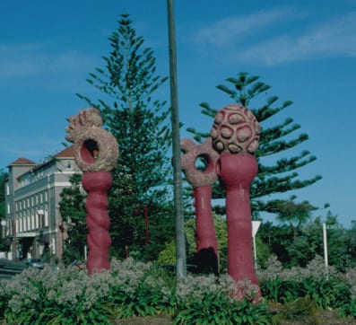 - Three Bush Markers ‘Three Bush Markers’ on the roundabout in Titirangi village. Heino Lepp